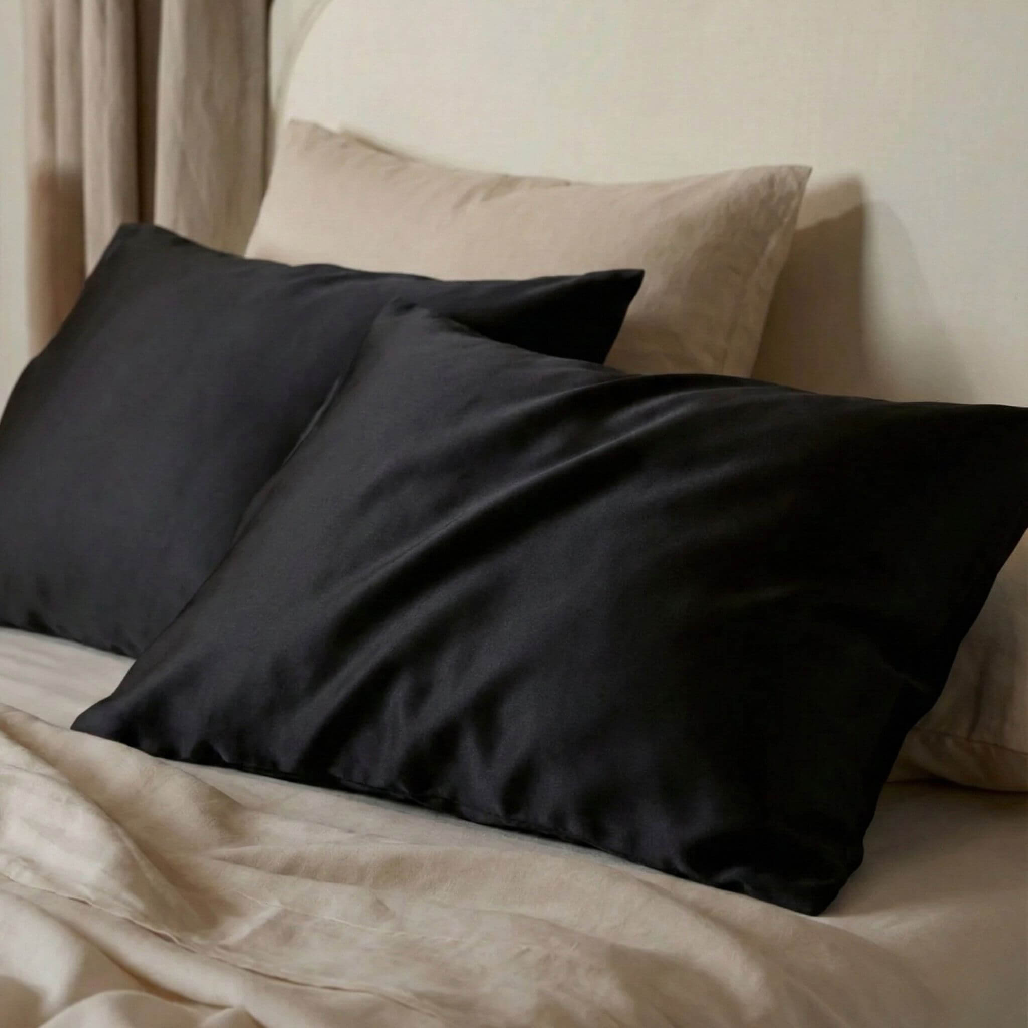 JUODAS ŠILKINIS PAGALVĖS UŽVALKALAS
