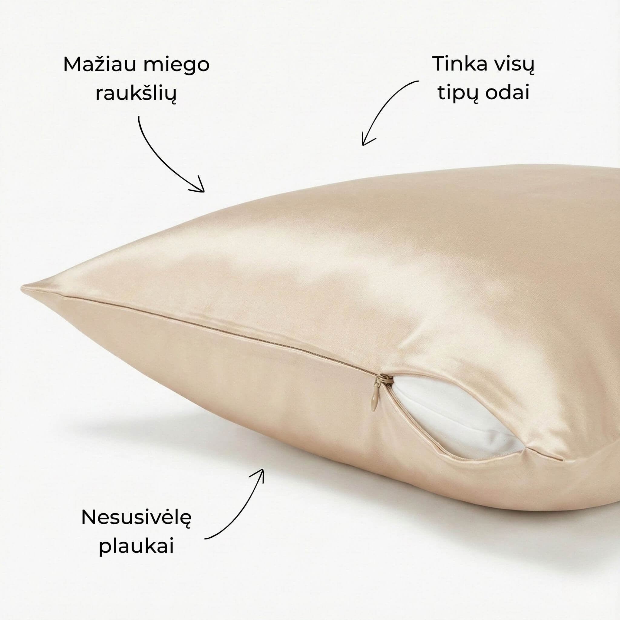 Mažina odos trintį- šilkas sumažina trintį tarp odos ir pagalvės užvalkalo, todėl jūsų oda bus apsaugota nuo miego raukšlių atsiradimo.